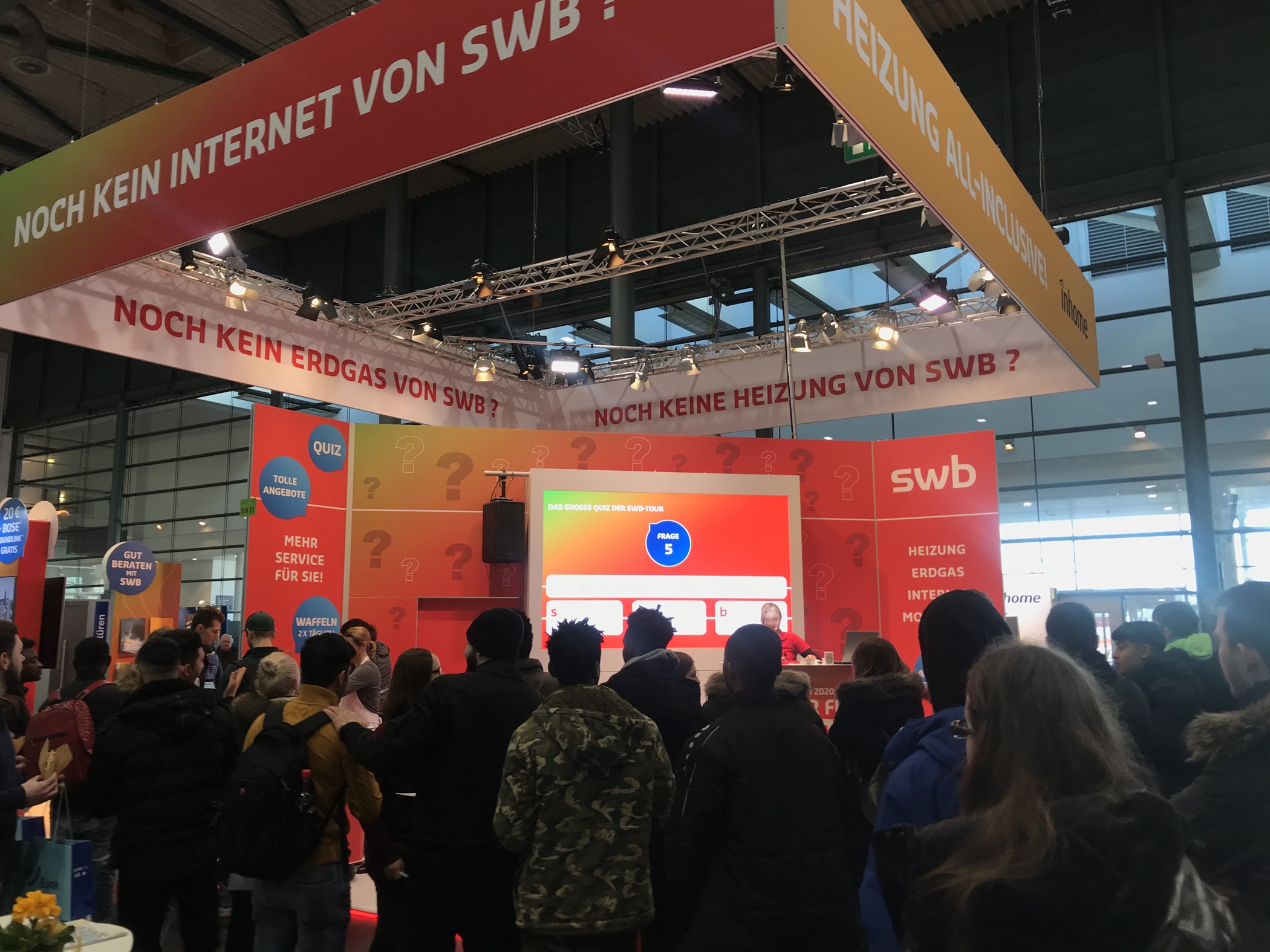 Als „mobiles Kundencenter“ werden aktuelle Serviceangebote vorgestellt und persönliche Fragen beantwortet sowie konkrete Spartipps zum persönlichen Verbrauchsverhalten oder zur individuellen Energie- und Wassernutzung gegeben. Zudem können beim Gewinnspiel und dem unterhaltsamen Quiz mit teils kniffeligen Fragen, tolle Preise gewonnen werden. Und ein schönes Give-Away hat der swb Stand für Jung und Alt sowieso immer parat.